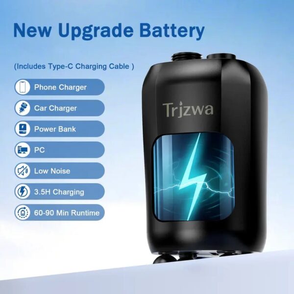 La ducha portátil TRJZWA tiene una batería de litio integrada de 9000 mAh, que puede proporcionar hasta 60-90 minutos de autonomía con solo 3,5 horas de carga. La interfaz tipo C ofrece diversas opciones de carga para garantizar que toda la familia pueda disfrutar de la acampada. Es una solución todo en uno fácil de llevar de excursión.