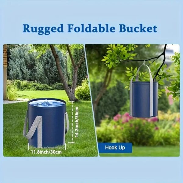 Diseño inferior mejorado y gancho 3 en 1: La parte inferior de la bomba de la ducha de camping adopta un diseño de ventosa, que puede hundirse hasta el fondo del agua para sujetar firmemente el cubo. Al mismo tiempo, la parte inferior se puede quitar para limpiar la arena del interior. El gancho 3 en 1 se puede utilizar en cualquier lugar, tanto en interiores como en exteriores.