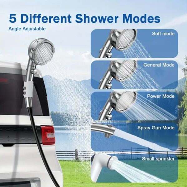 Adecuado para diversos entornos, además del equipo de ducha, este producto también ofrece una variedad de funciones, que pueden utilizarse para limpiar vehículos, casas, regar jardines y bañar mascotas. Úselo como ducha portátil para perros, ducha al aire libre o incluso como amplificador de manguera de jardín. Esta versátil ducha mejora la comodidad y la diversión de sus actividades diarias.