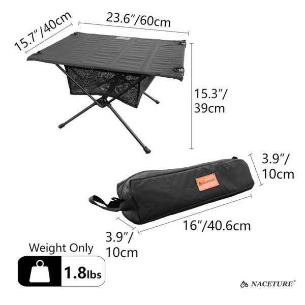 Ligera, plegable y portátil: con unas dimensiones plegadas de tan solo 10 cm x 41 cm, esta mesita de camping de 820 g cabe fácilmente en una mochila, una bolsa de playa, una bolsa de supervivencia o incluso en tu caja de camping, para que puedas llevarla contigo a cualquier lugar.