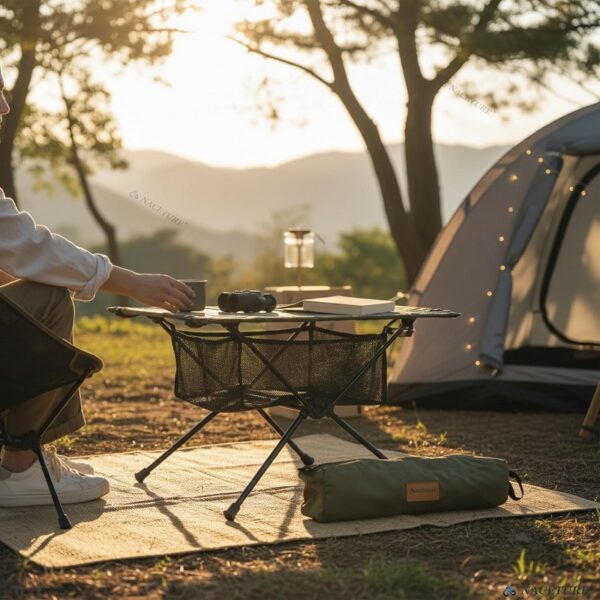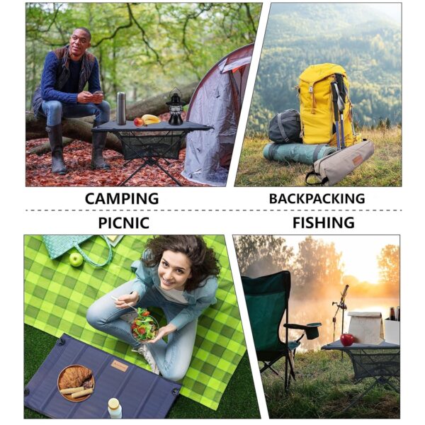 Mesa de camping multiusos para exteriores: esta mesa plegable diseñada por NACETURE es imprescindible para acampadas, excursiones y viajes de mochilero, y ofrece una superficie resistente y estable para colocar comidas rápidas, disponer de espacio adicional o apoyar pequeños dispositivos.
