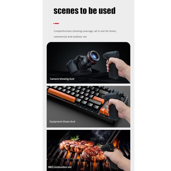 Funcionalidad multiuso: ideal para refrescarse mientras se practica deporte, limpiar el polvo del ordenador, limpiar zonas de difícil acceso e incluso como ventilador portátil. +
